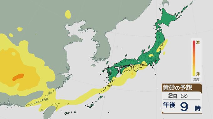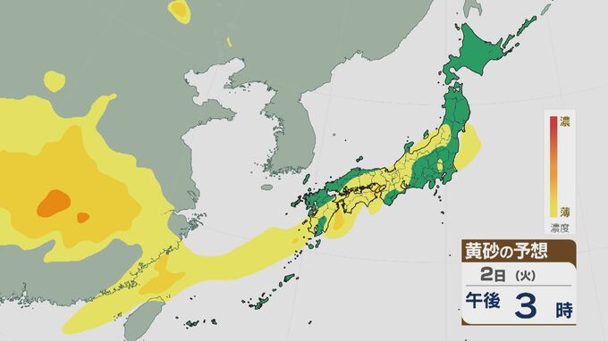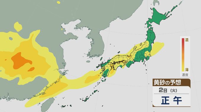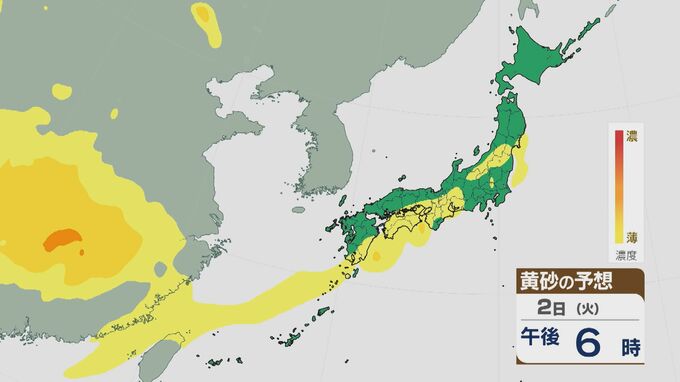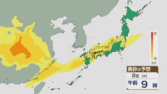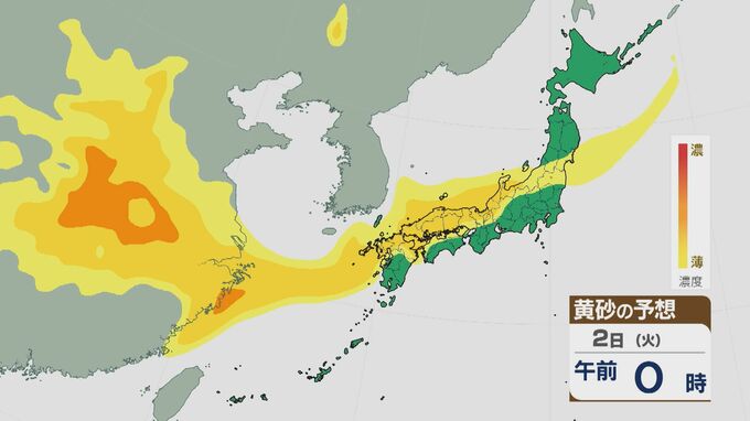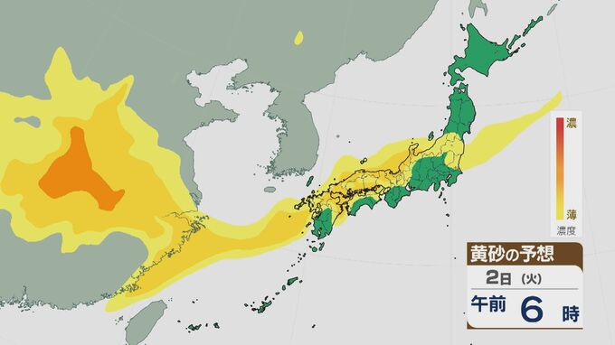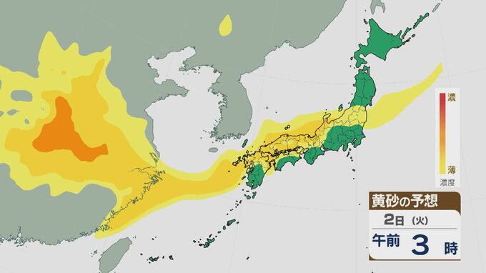 【黄砂情報】黄砂は1日(月)は日本海側で飛来し濃度が若干高いところも 2日(火)には太平洋側の地域にも 大陸からの黄砂はどこへ 最新の飛来予想シミュレーション 北陸放送 2025年12月1日(月) 09:45 国内 2日は、明け方から次第に太平洋側の地域に黄砂が飛来する見込みです。