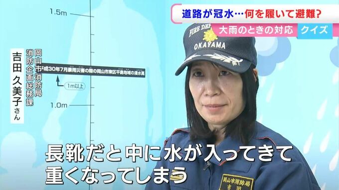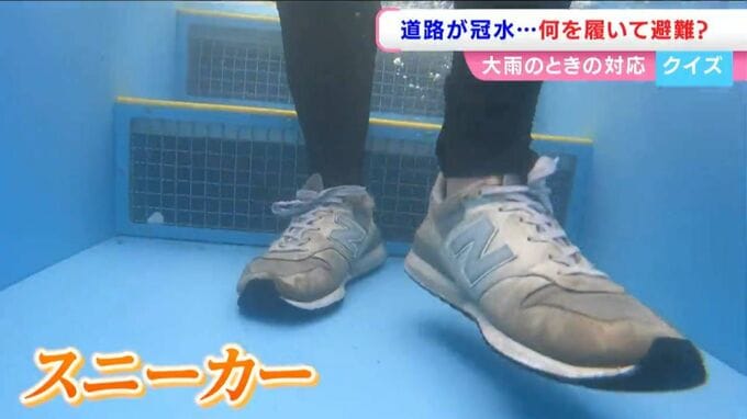 岡山市消防局はそもそも道路が冠水する前に避難してほしいと呼びかけていますが、どうしても冠水してから避難しなければならない場合にはスニーカーが適しているということなんです。