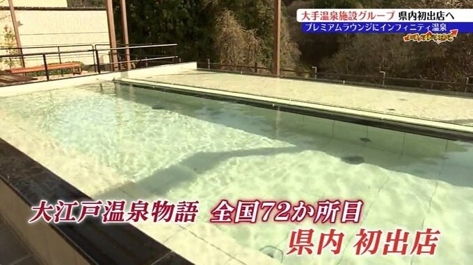 「こちらが大江戸温泉物語の県内初の施設です。ロビーはシックな空間でひろびろとしています。オープンを3週間後に控え、施設内では最終準備が進められています」