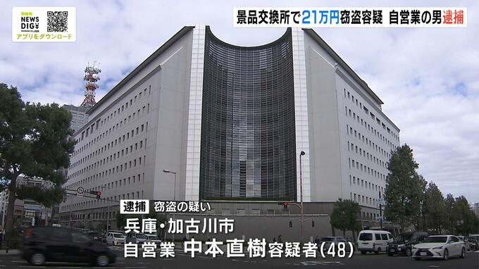 11月、大阪府堺市のパチンコ店の景品交換所で21万円が盗まれた事件で、自営業の男が逮捕されました。 窃盗の疑いで逮捕されたのは、兵庫県加古川市の自営業・中本直樹容疑者(48)です。 11月12日、堺…
