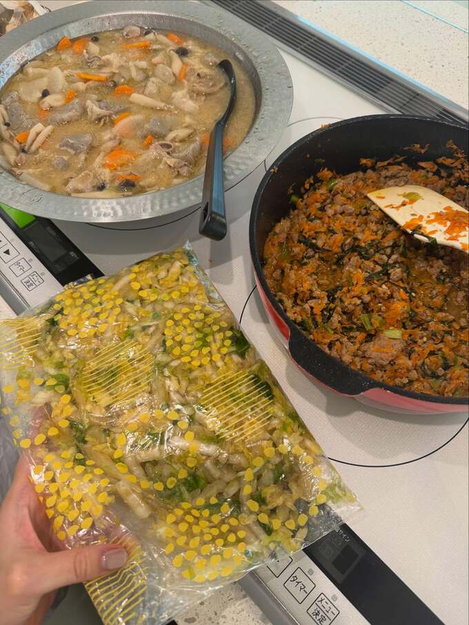 料理の写真は友人に見せるために撮ったものだという加藤さん。透明な弁当箱に詰められた料理や、IHクッキングヒーターで同時に調理する姿など、効率的に家事をこなす様子が投稿から伝わってきます。