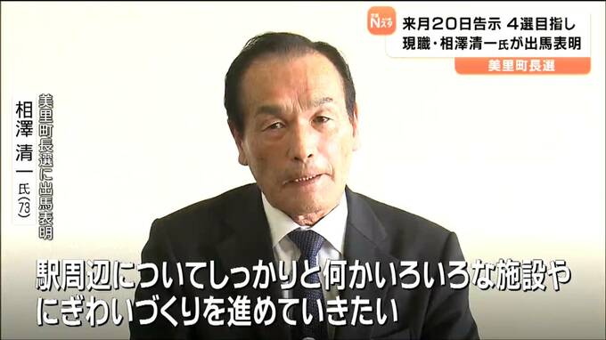 任期満了に伴い2026年1月20日に告示される宮城県の美里町長選挙に現職の相澤清一氏が4期目を目指し出馬を表明しました。