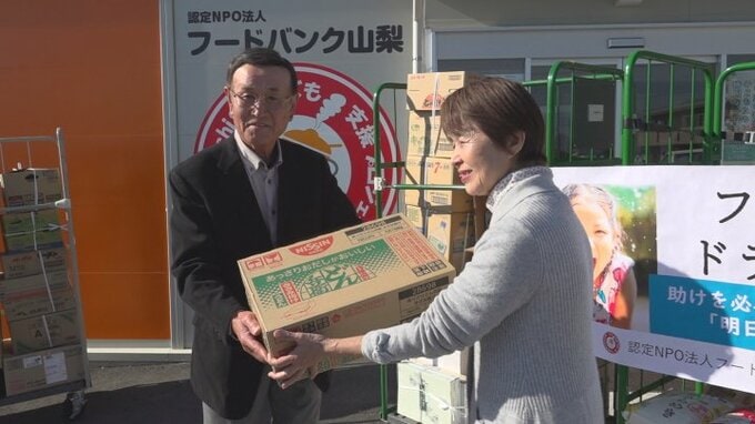 年末年始の食料支援に役立ててもらおうとNTT東日本がフードバンク山梨に食品およそ200キロを寄付しました。