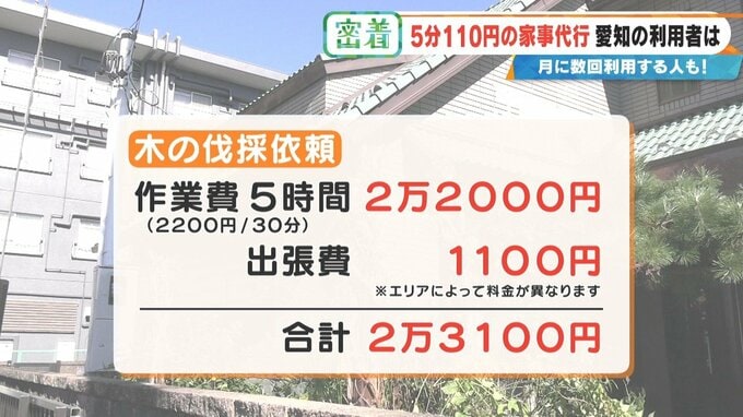 樹木の伐採など、大がかりな作業は30分毎に2200円。今回は5時間の作業だったため、2万2000円の作業費と、1100円の出張費を合わせて2万3100円に。