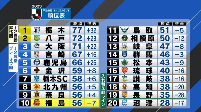 サッカー明治安田J3の福島ユナイテッドFCは、29日、ホームでリーグ最終戦を戦い、惜しくもプレーオフ進出を逃しましたが、4連勝で今シーズンを締めくくりました。