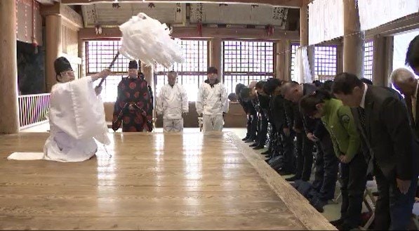 社殿では、スキー場や、観光関係者などおよそ40人が40分余りかけて祈祷し、水を清めます。