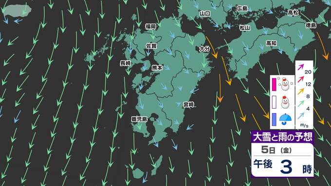 3. 【九州でも雪か】3日(水)から師走寒波 2日(火)までに冬支度を済ませよう「雪はいつ どこで?」【雪と風のシミュレーション / 九州各都市の週間予報】福岡・佐賀・長崎・大分・熊本・宮崎・鹿児島