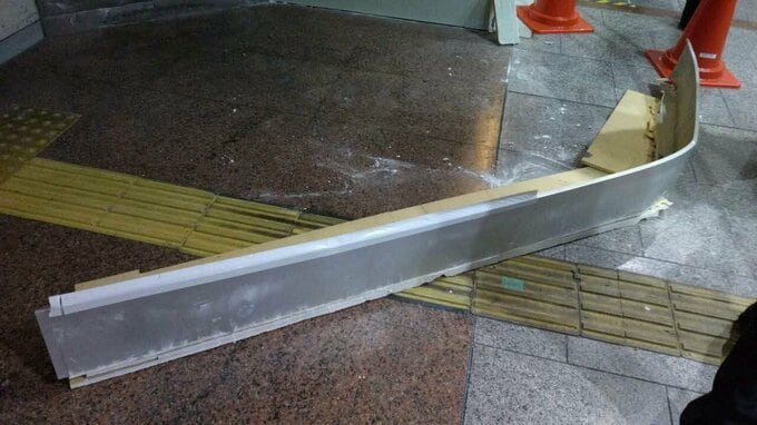 結局、L字型のパネルとボードは、工事から約3か月後に落下しました。
