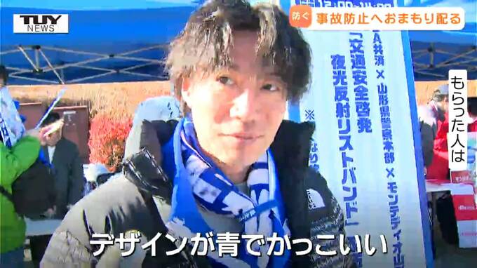 モンテディオ山形のホーム最終戦が行われたおととい、NDソフトスタジアムで配られたのは、「夜光反射リストバンド」です。