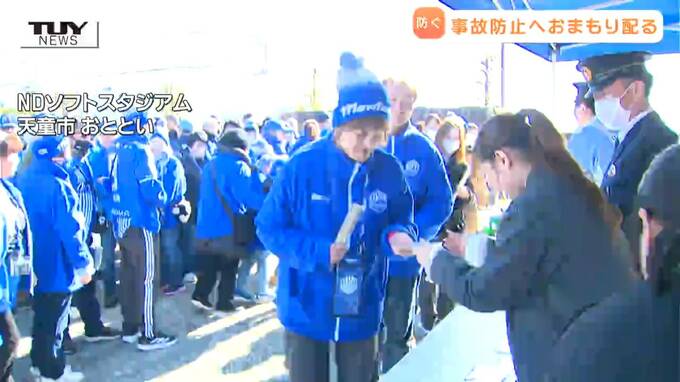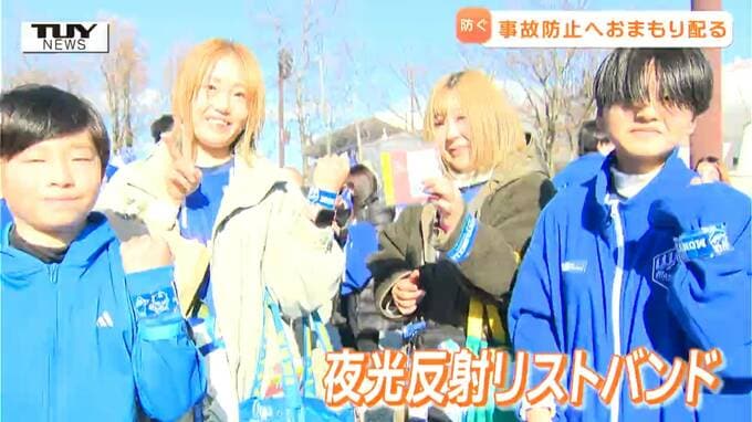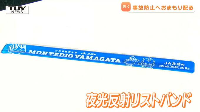 この時期は日没が早く、雪のため視野が狭くなり、夜間の交通事故が増える傾向にあります。こうした中、歩行者に夜光反射材をつけて事故防止につなげてもらおうと県警が呼びかけを行いました。