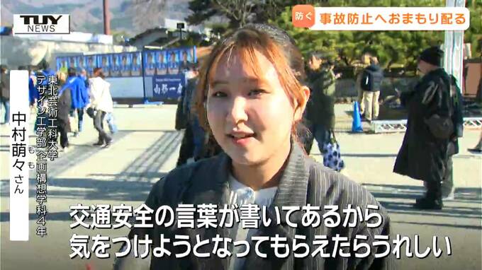東北芸術工科大学 企画構想学科4年 中村萌々さん「このカード、可愛いから持ち歩こう、交通安全の言葉が書いてあるから気をつけようとなってもらえたら嬉しい。デザインに関しては可愛いと思ってもらいたいとすごく考えて作ったので、その声をいただけてすごくうれしかったです」