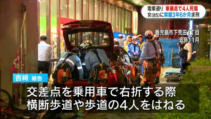 鹿児島市の中心部で去年11月、4人が車にはねられ、1人が死亡した事故です。きょう1日、過失運転致死傷の罪に問われている女の裁判で、検察は禁錮3年6か月を求刑しました。過失運転致死傷の罪に問われているのは、…