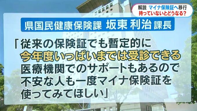 県国民健康保険課の坂東利治課長は、「従来の保険証でも暫定的に今年度いっぱいまでは受診できるので安心してほしい。医療機関でのサポートもあるので、不安な方も一度マイナ保険証を使ってみてほしい」と話していました。