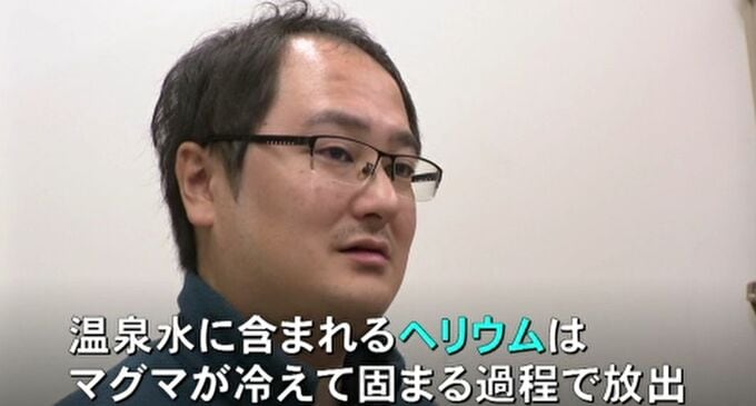 温泉水に含まれるヘリウムは、マグマが冷えて固まる過程で放出されたとみられます。