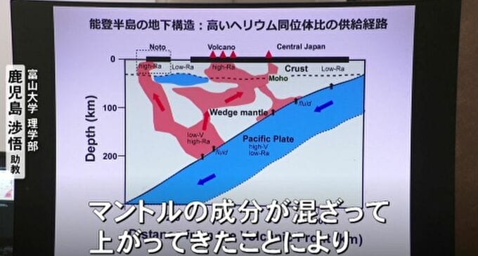 富山大学理学部・鹿児島渉悟助教「太平洋プレートが沈み込んでそこから脱水したものとマントルの成分が混ざって上がってきたことによって水が供給されている」