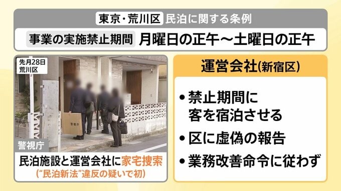 そうした中、警視庁は11月28日、荒川区の民泊施設とその運営会社に家宅捜索に入りました。住宅宿泊事業法が施行されてから初の強制捜査になります。