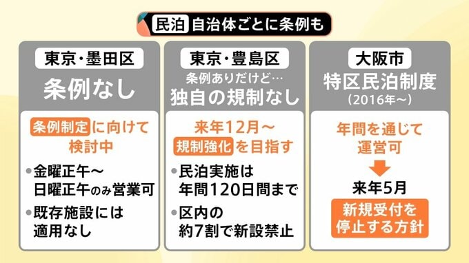 騒音やゴミの問題があるということで、各自治体で民泊の規制強化の動きが広がっています。ただ、東京・墨田区では条例内容を不安に思う住民もいるようです。
