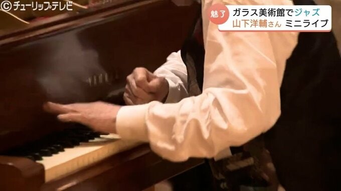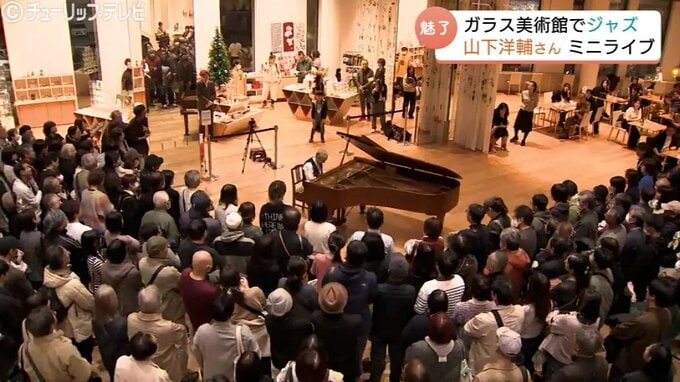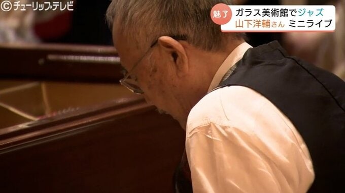 年内での活動休止を表明しているジャズピアニストの山下洋輔さんが30日、富山市ガラス美術館でのミニライブを開き、館内に響き渡るピアノの旋律が来館者を魅了しました。