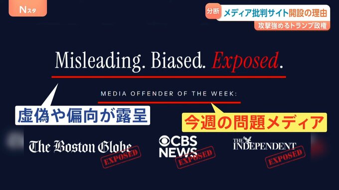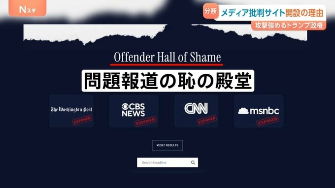 新たに立ち上げられたウェブページには、「虚偽や偏向が露呈」「今週の問題メディア」。そして「問題報道の恥の殿堂」など、複数の項目が設けられています。