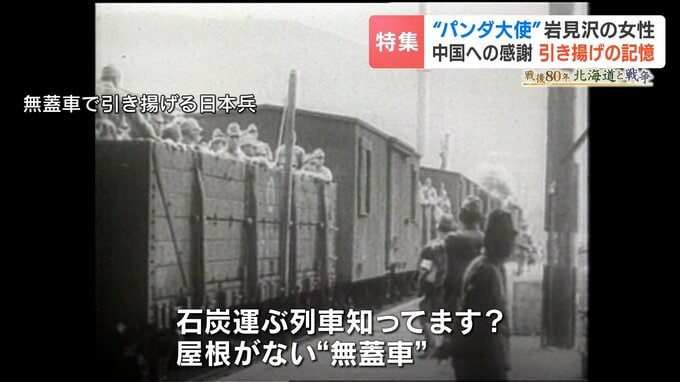 「石炭運ぶ列車って知ってます?屋根がない無蓋車。あれに乗って中国から脱出するときに、逆に私達はそれで良かったんです。だけど、無蓋車じゃなくて(屋根のある)列車に入れられて引き揚げてくる人は、列車に入るとがしゃってドア閉められるんですよ」