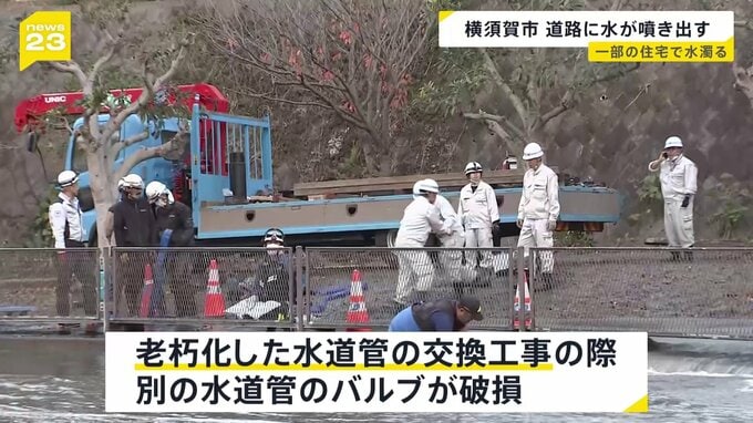 1日午後、神奈川県横須賀市で水道管が破損し、水が道路に噴き出しました。市によりますと、老朽化した水道管の交換工事をしている際、別の水道管のバルブが何らかの理由で破損し、水が噴き出たということです。水…