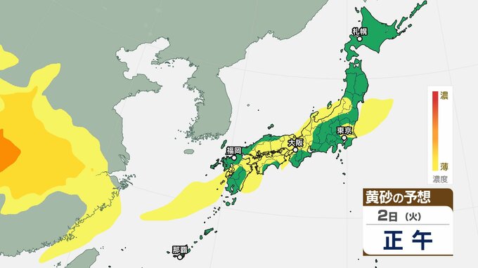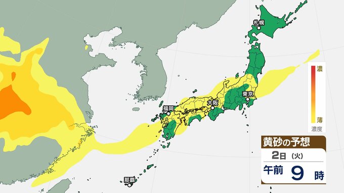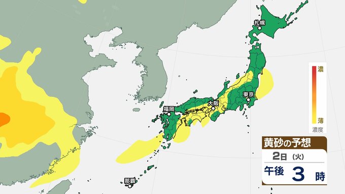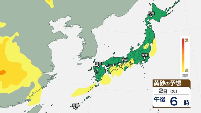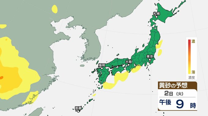 【黄砂情報】きょう(2日)日本列島に広範囲にわたり飛来か アレルギー対策など注意 黄砂シミュレーション【気象庁 2日】 RSK山陽放送 2025年12月2日(火) 08:10 国内 2日(火)の黄砂はどうなる? 2日(火)の黄砂のシミュレーションは、【画像②~】のとおりです。 【画像②】 【画像③】 【画像④】 【画像⑤】 【画像⑥】
