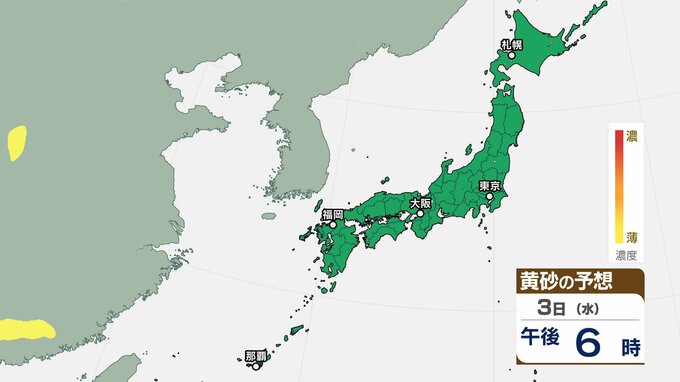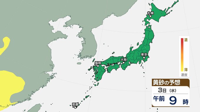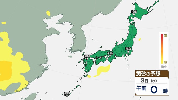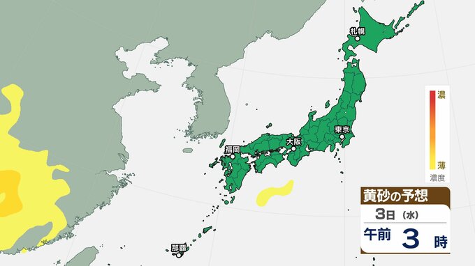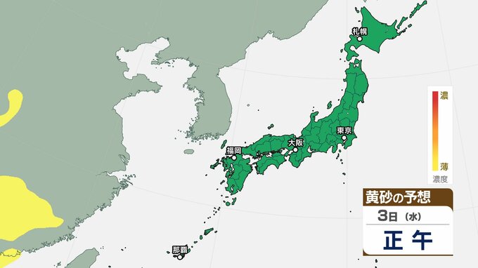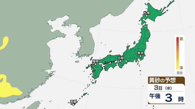 3日(水)の黄砂のシミュレーションでは、【画像⑦~】のとおりです。