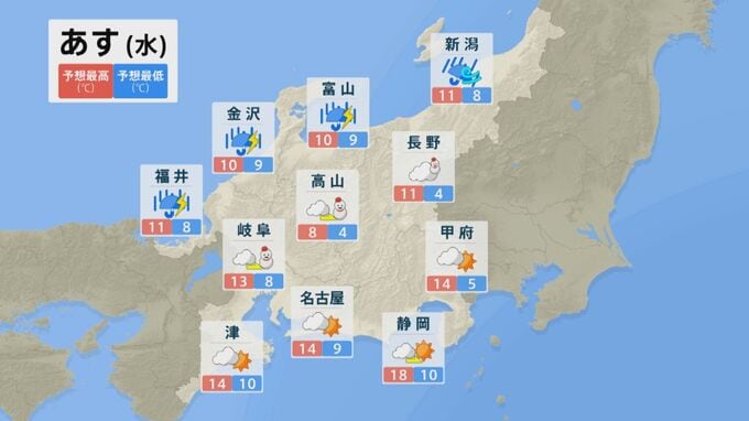 北陸でも3日から4日にかけては雨や雪が降るでしょう。4日は気温がぐっと低くなりそうです。