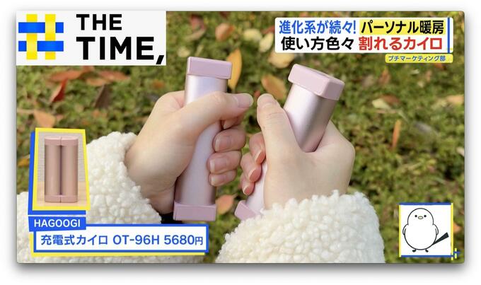 “割れるカイロ”は他にも、細長くて握りやすい棒状の2つになる「充電式カイロ OT-96H」(HAGOOGI/5680円)