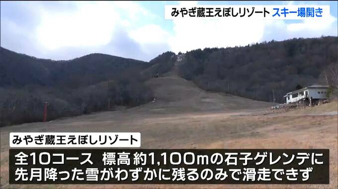 蔵王町の「みやぎ蔵王えぼしリゾート」では1日、県内で最も早くスキー場開きを迎えました。しかし、雪不足のため営業開始は持ち越しとなりました。