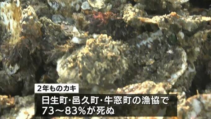 さらに、日生町・邑久町・牛窓町の漁協では「2年もののカキ」の73%から83%が死んでいたということです。