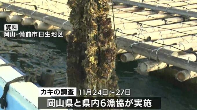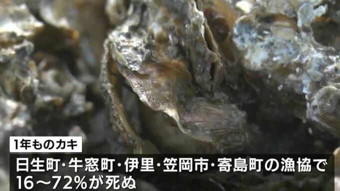 岡山県と県内の6漁協が先月(11月)下旬に実施した調査で明らかになったものです。県水産課によりますと、日生町・牛窓町・伊里・笠岡市・寄島町の漁協で「1年もののカキ」は16%から72%が死んでいました。