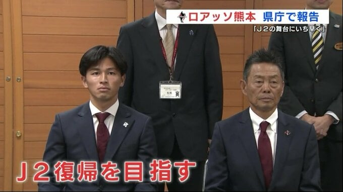 サッカー明治安田J2リーグの今シーズンを戦い抜いたロアッソ熊本の選手たちが熊本県庁を訪れ、竹内副知事に結果を報告しました。竹内副知事を表敬訪問したのは、ロアッソ熊本の大木武監督と、キャプテンの岩下航選…