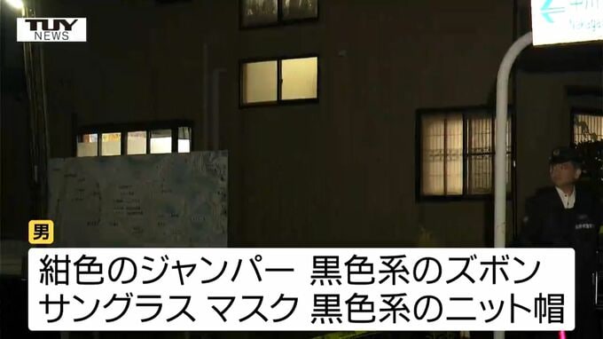 男は1人で、年齢不詳。上が紺色のジャンパーに下が黒色系のズボン。サングラスとマスク、黒色系のニット帽をかぶっていました。