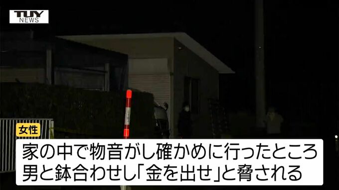 警察によりますと当時、女性が家の中で物音がしたため確かめに行ったところ、男と鉢合わせし「金を出せ」と脅されたということです。