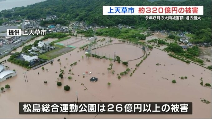今年8月の記録的大雨で大きな被害が出た熊本県上天草市の被害額が、約320億円に上ることが明らかになりました。上天草市では過去最大の被害額です。