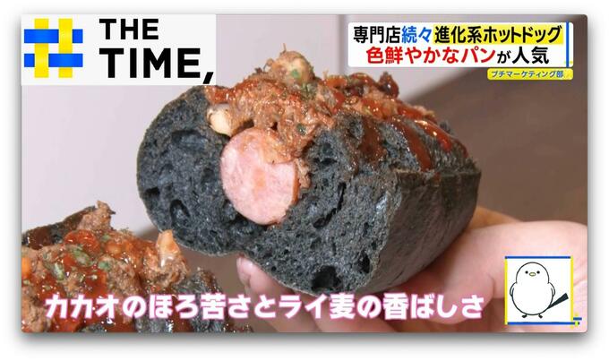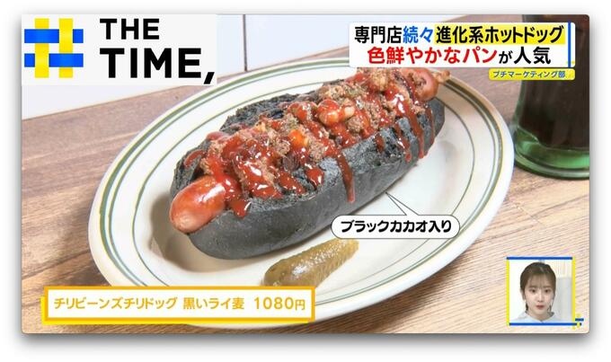 メキシカンドッグやハワイアンドッグなど全16種類が揃う中、一番人気なのは、生地にブラックカカオを練り込んだ“黒いパン”の「チリビーンズチリドッグ 黒いライ麦」(1080円)。