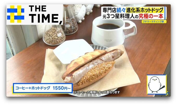 元3つ星レストランの料理人でもあるオーナー・高山健二さんが作るのは、“ソーセージ・パン・粒マスタード全て自家製”のホットドッグ。(コーヒー+ホットドッグ・1550円~※コーヒーの種類によって異なります)