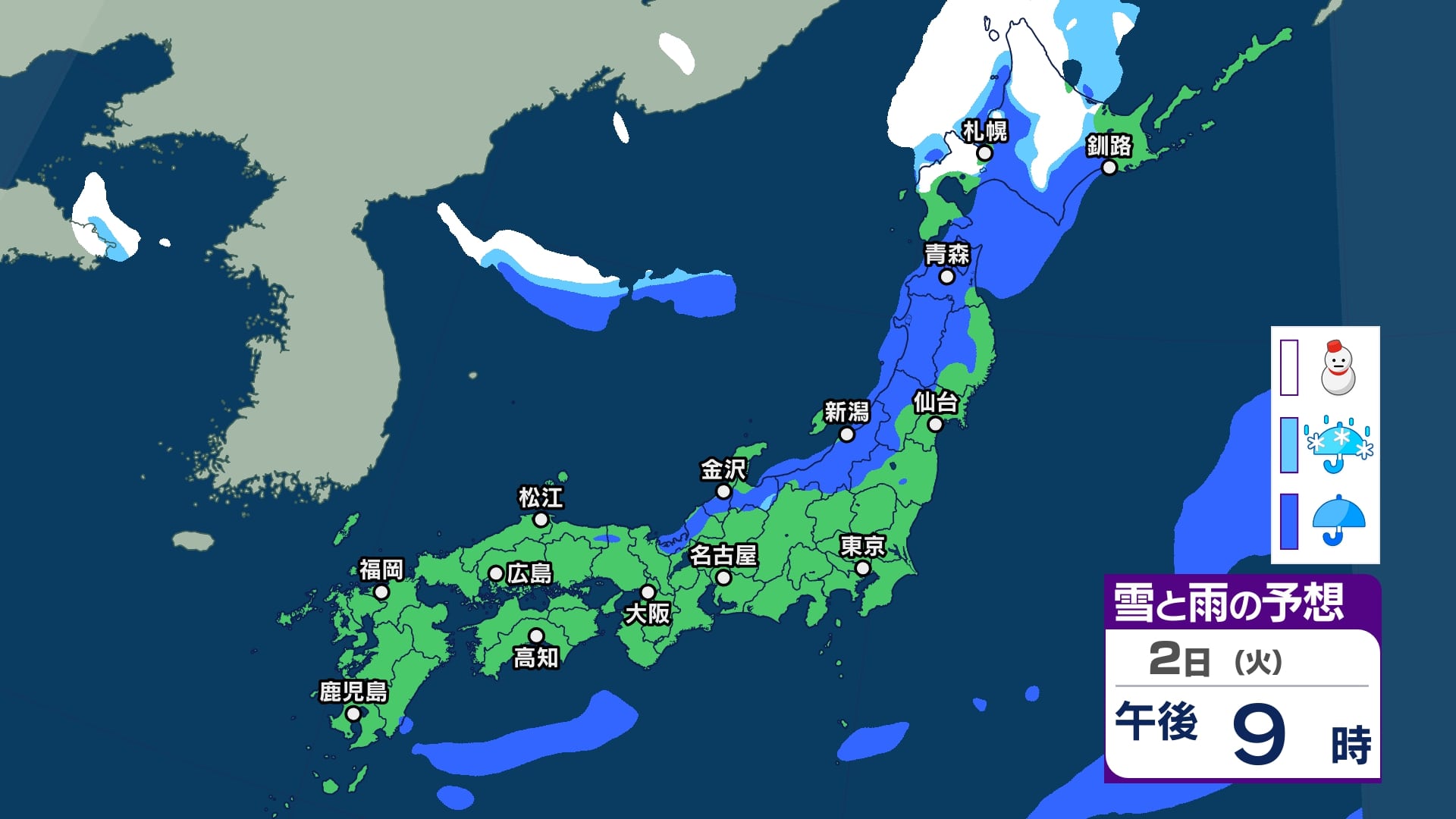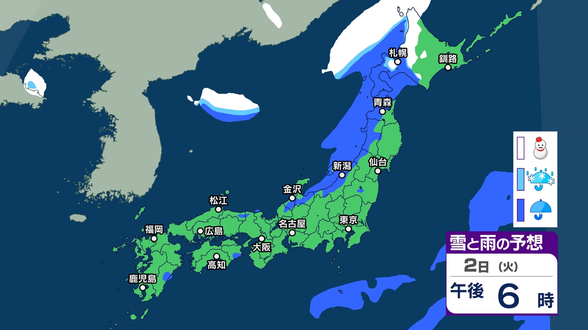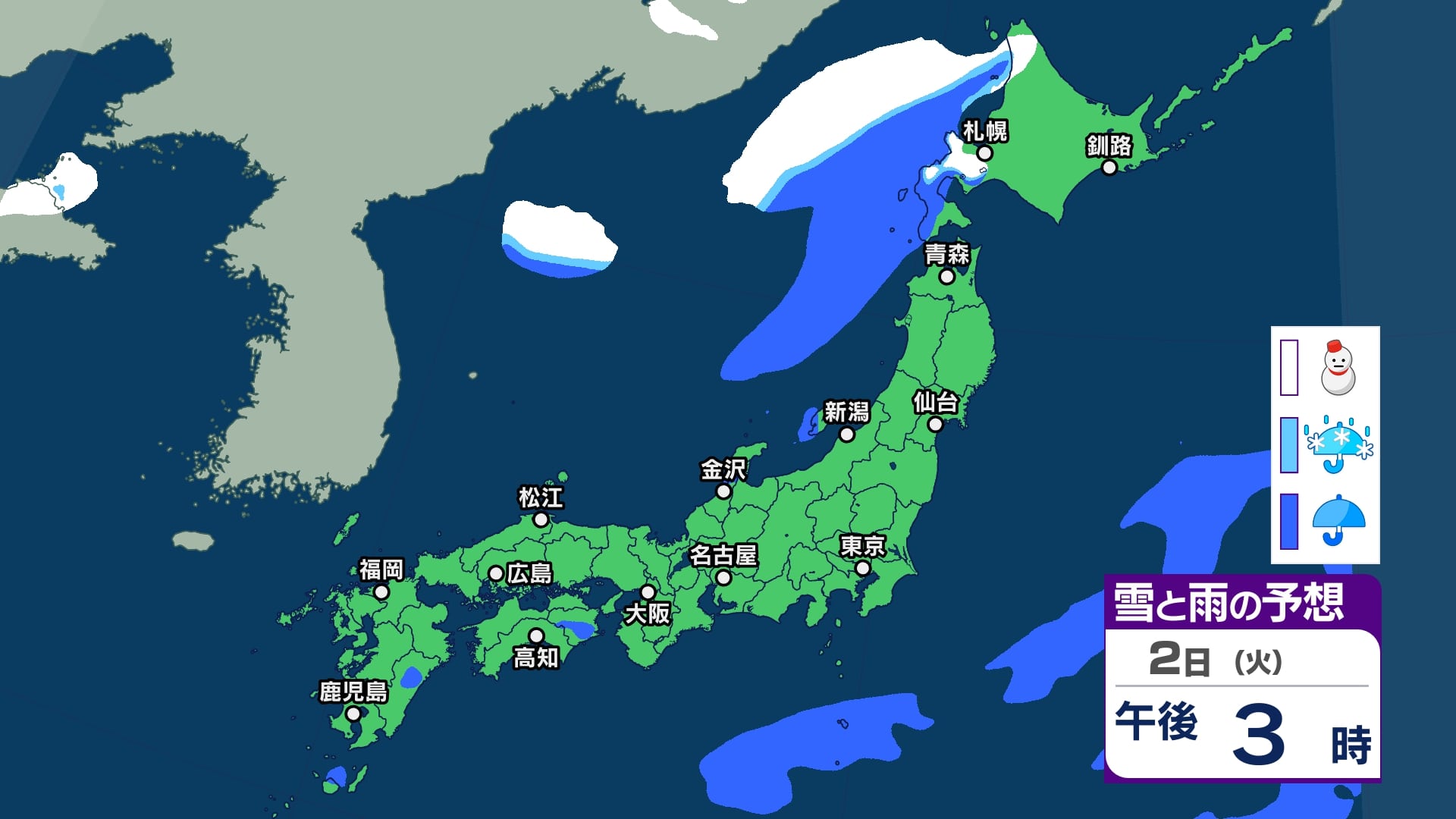 【雪情報】近畿地方上空約1500mに氷点下6度以下のこの時期としては強い寒気が流れ込む見込み 3~4日頃にかけて山地を中心に雪が降り、平地でも積雪となる可能性が【雪と雨のシミュレーション】 チューリップテレビ 2025年12月2日(火) 12:49 2日(火)雪と雨のシミュレーション