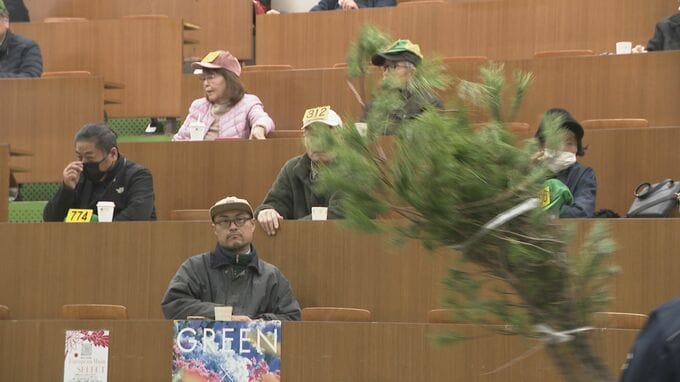 金沢市二口町の公設花き地方卸売市場で開かれたマツの競り「松市」には北陸3県の生花店などから約40人が参加しました。