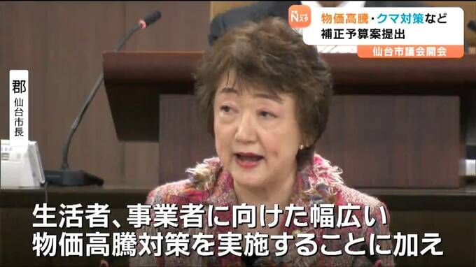 郡仙台市長:「生活者、事業者に向けた幅広い物価高騰対策を実施することに加え、ツキノワグマ対策に要する経費について所要の予算を計上した」