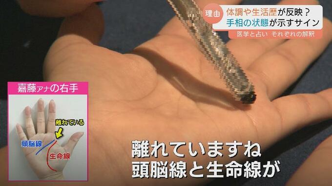 せっかくなので嘉藤アナの手相を占ってもらいました。