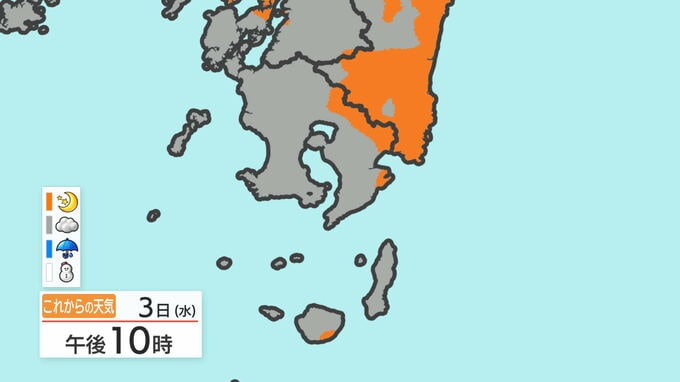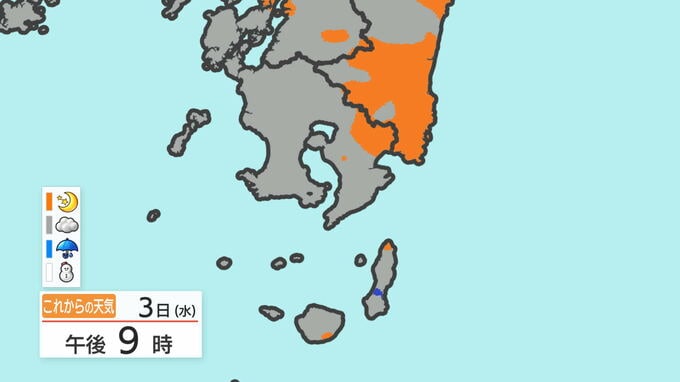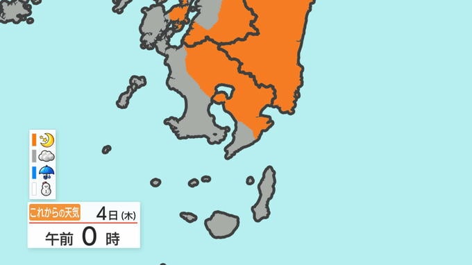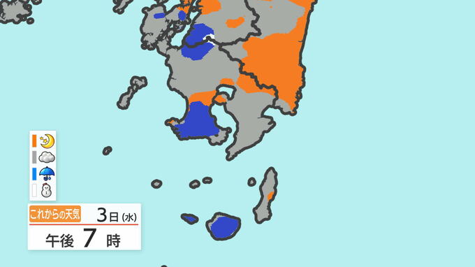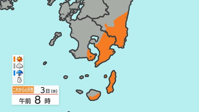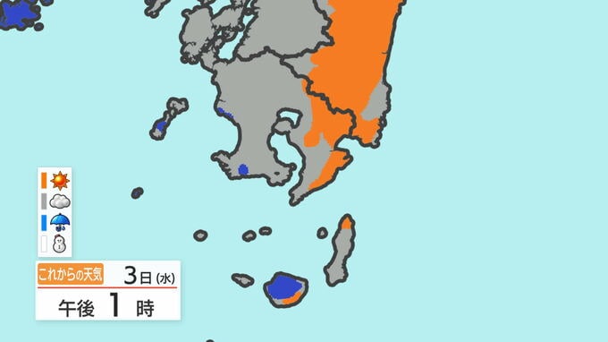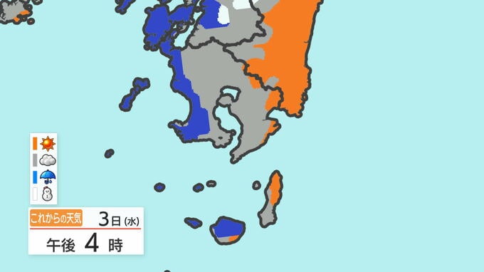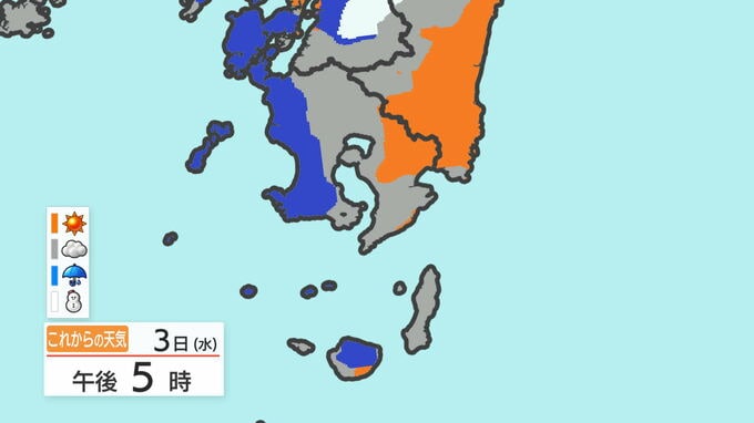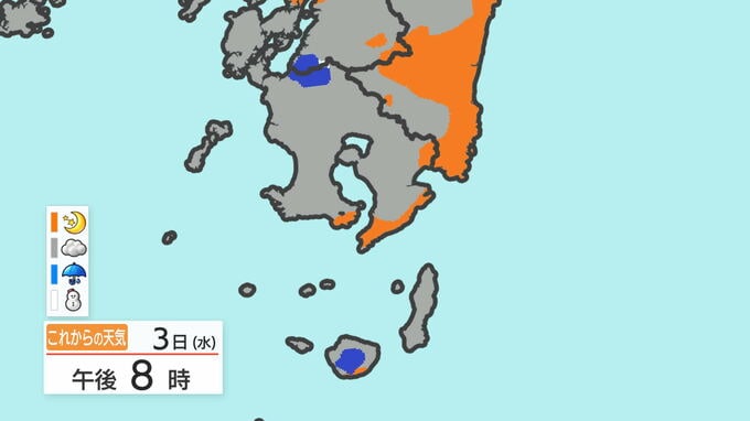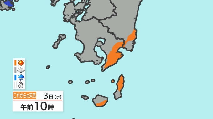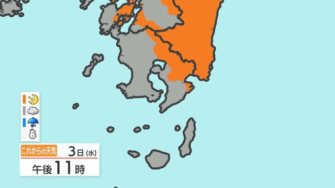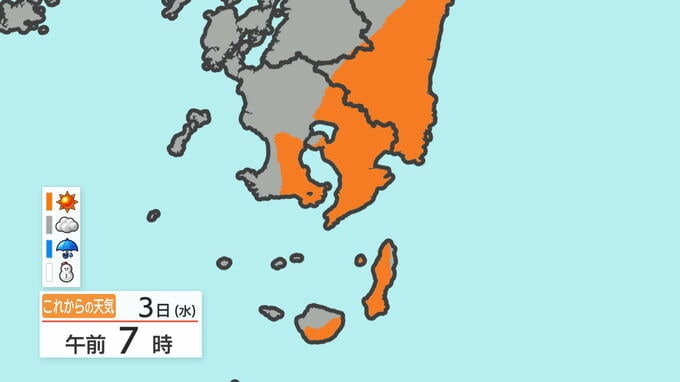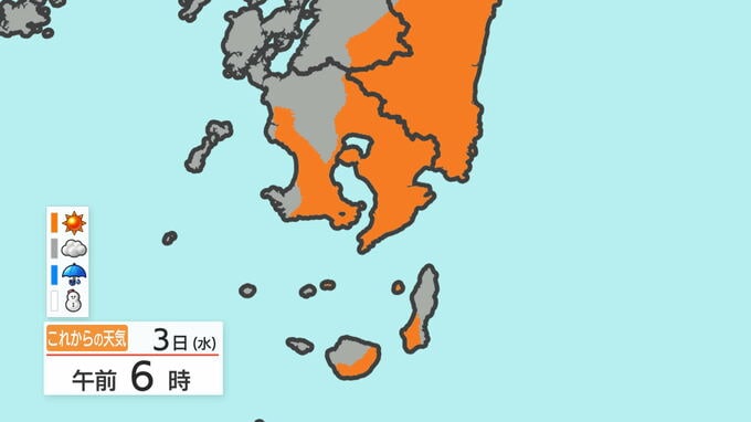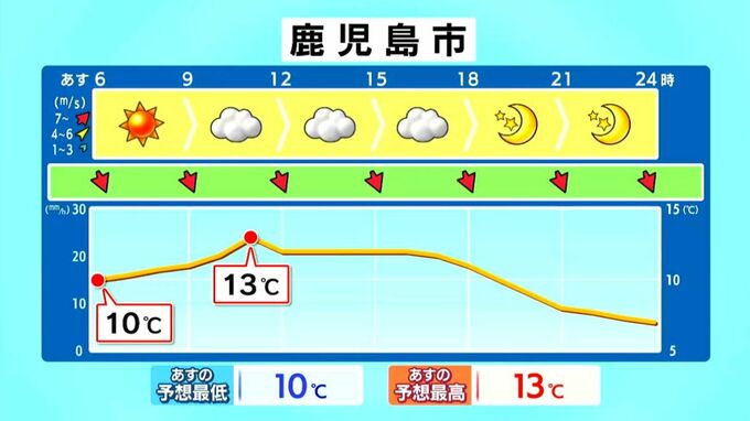 あす3日の天気と気温の変化を、鹿児島市を例にご覧ください。
