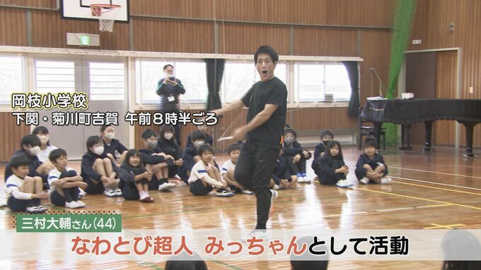 岡枝小学校にやってきたのは”なわとび超人みっちゃん”として活動する三村大輔さんです。