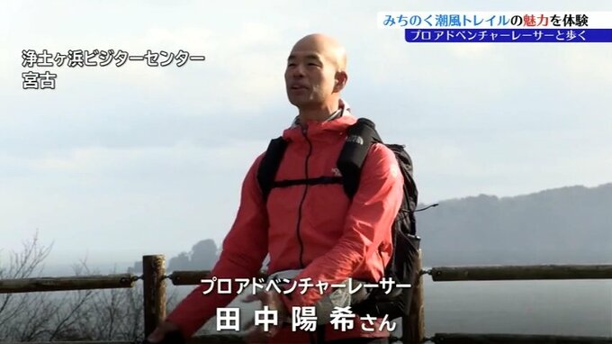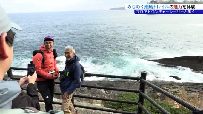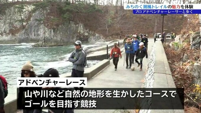 みちのく潮風トレイルの魅力を多くの人に知ってもらおうと、プロアドベンチャーレーサーと一緒に歩くイベントが岩手県宮古市で行われました。
