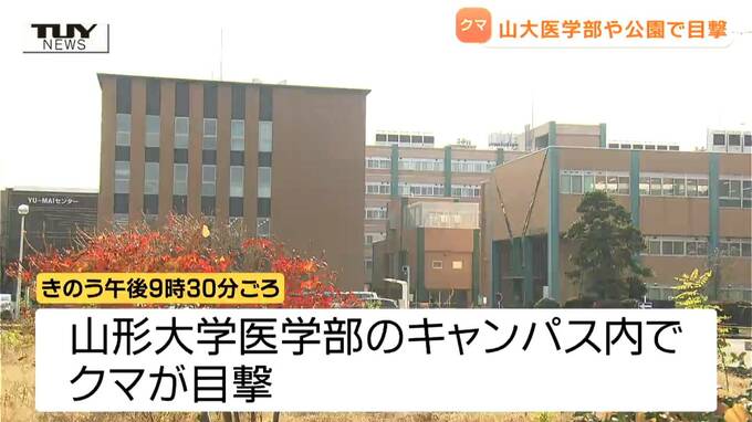市や警察によりますと、きのう午後9時30分ごろ、山形市飯田西の山形大学医学部のキャンパス内でクマが目撃されました。