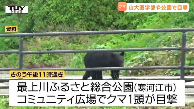 クマは山形市以外でも目撃されています。きのう午後11時過ぎ、寒河江市の最上川ふるさと総合公園のコミュニティ広場でクマ1頭が目撃されました。