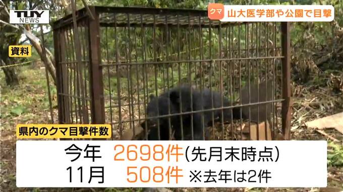 11月の目撃件数は、去年が2件だったのに対して今年は508件となっていて、県は11月末までとしていた「クマ出没警報」を今月末までに延長して注意を呼びかけています。