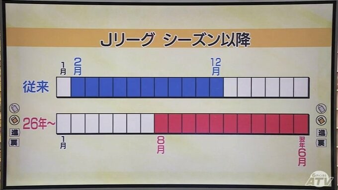 Jリーグは2026年、秋春制に移行します。これまでは2月開幕で12月までだったのが、8月に開幕して翌年の6月までのシーズンとなります。
