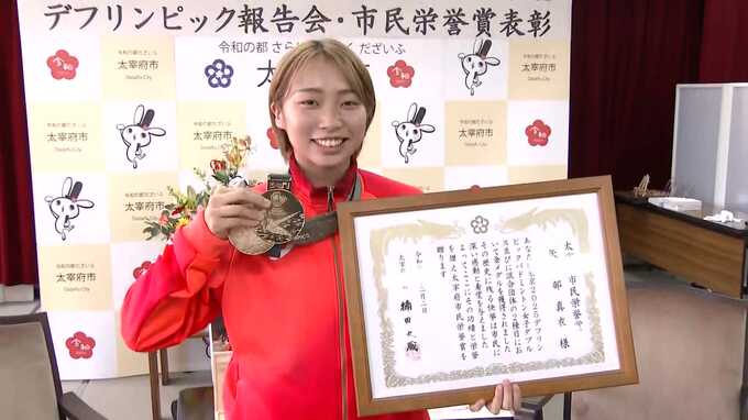 その功績をたたえて太宰府市が2人に市民栄誉賞を贈り、関東在住の紋可さんの分とともに真衣さんが受け取りました。